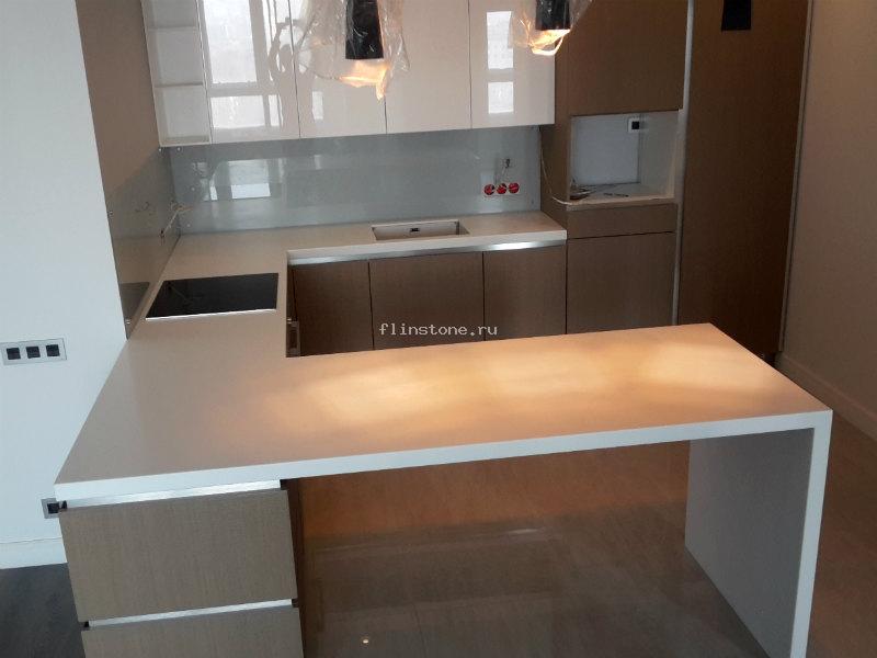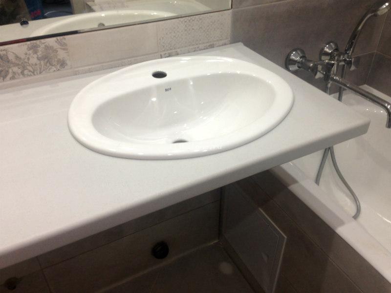 - Акриловый камень для столешниц отличается пластичностью, что упрощает создание бесшовных конструкций и обратных вырезов, но уступает по устойчивости к царапинам и имеет более низкую стоимость.