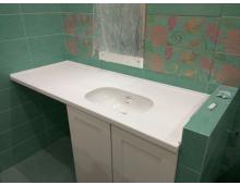 Белая столешница в ванную - оригинальное интерьерное решение, которое порадует своих владельцев. Это одновременно и красиво, и функционально. При использовании материала Hanex (Южная Корея) гарантированы великолепный вид, качество и удобство в уходе. Как и все другие изделия из раздела "Акриловые столешницы" отличается особым удобством в использование и создаёт уникальный дизайн. Купить белая столешница в ванную в Москве можно по цене 27500 рублей. Для заказа можете оставить заявку на сайте, либо позвонить нам по номеру +7 (495)-723-88-33.