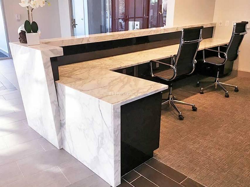 Ресепшн из искусственного камня смотрится очень дорого и презентабельно, внешне они не отличаются в от мрамора, но стоят гораздо меньше.